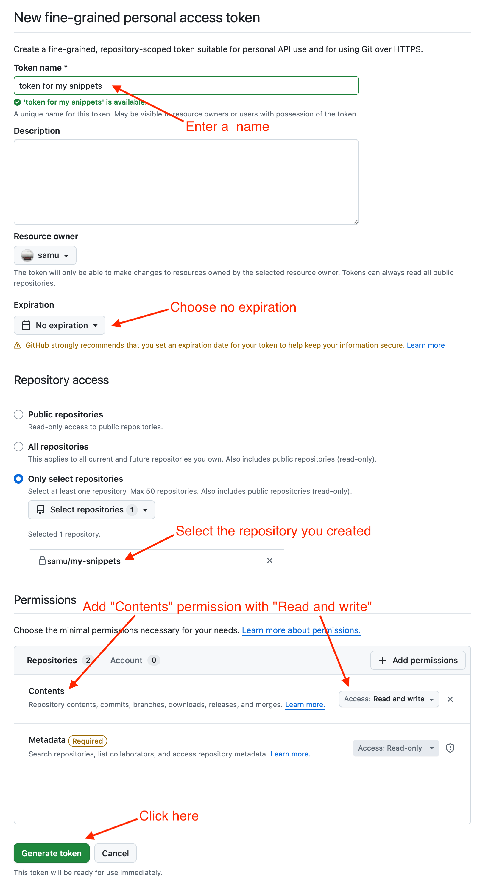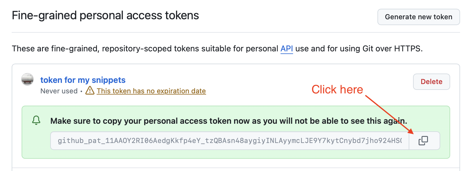- Go to new personal access token