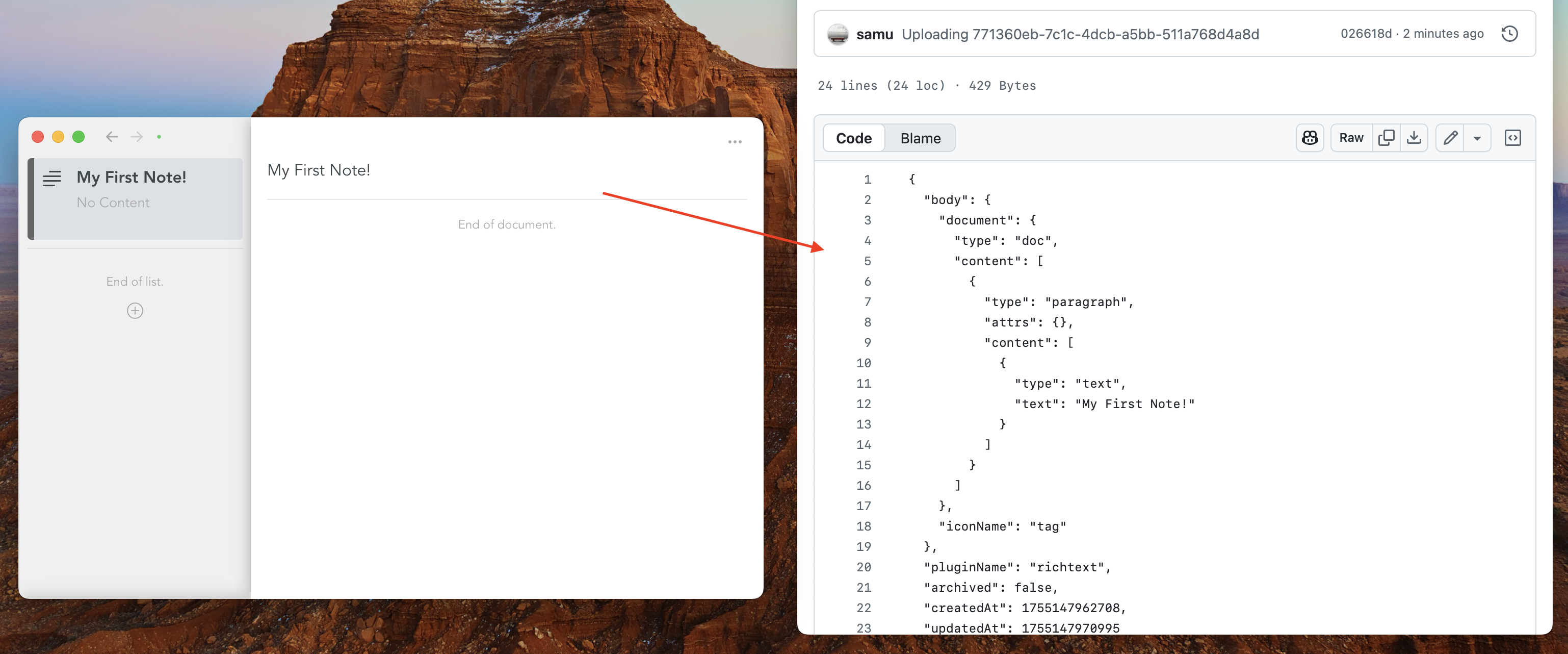 Snippets will sync all of your notes with GitHub automatically. You can refresh the github repository in the browser to see the raw data.